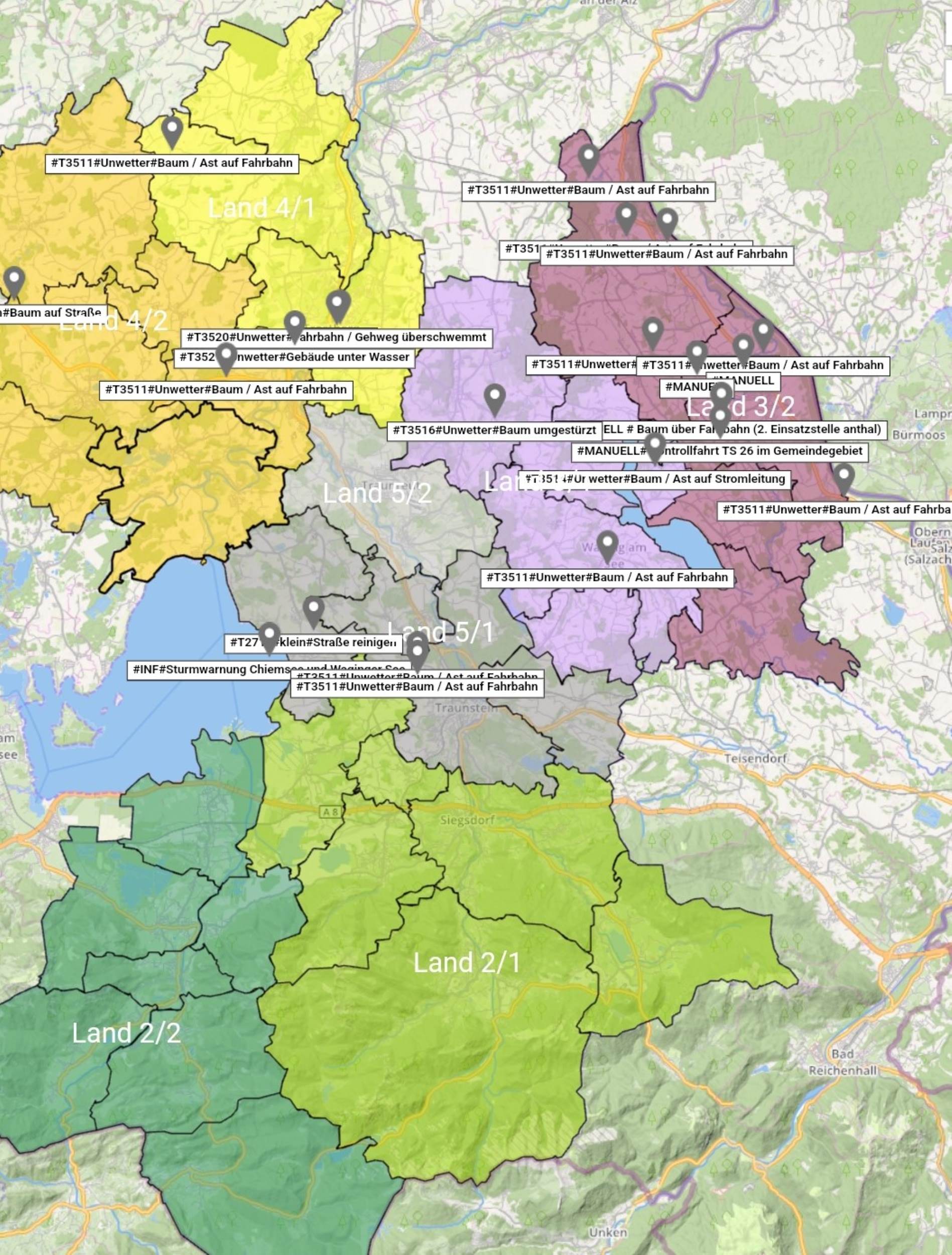 Für die Feuerwehren südlich von Traunstein blieb alles ruhig. Hier gab es keine Alarme zu verzeichnen. In der Großen Kreisstadt waren die Feuerwehren Wolkersdorf und Traunstein im Einsatz. Kommandant Christian Schulz meldet 14 Einsätze, insbesondere abgebrochene Äste und umgestürzte Bäume. Es waren aber auch Gegenstände wie Bauzäune zu sichern. Außerdem wurden die Aktiven der Feuerwehr Traunstein zu einem Brandmeldealarm gerufen. Die Feuerwehr Haslach wurde in den Mittagsstunden noch zu einem umgestürzten Baum im Bereich Mühlwiesen alarmiert.