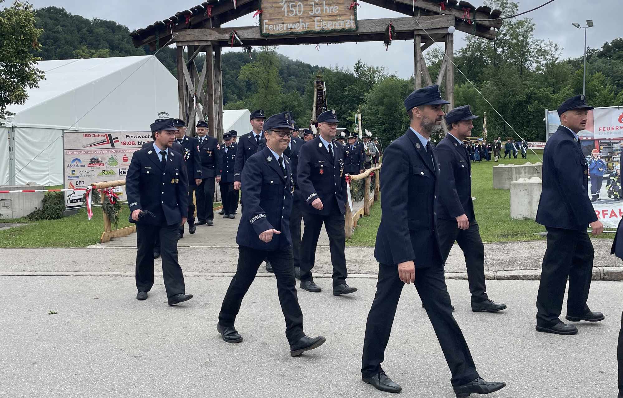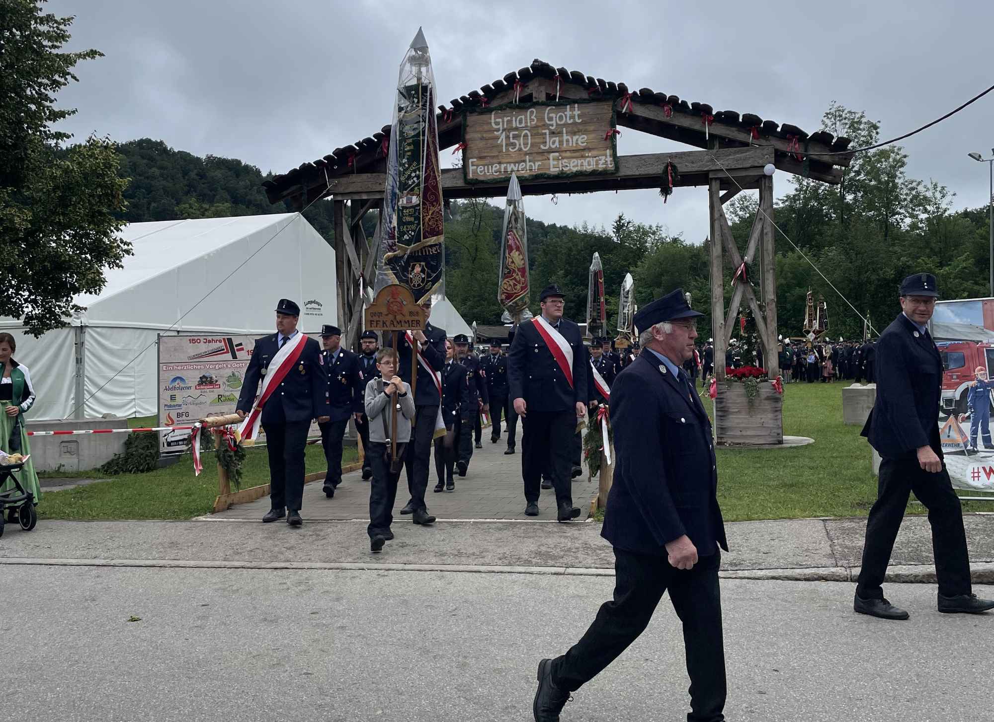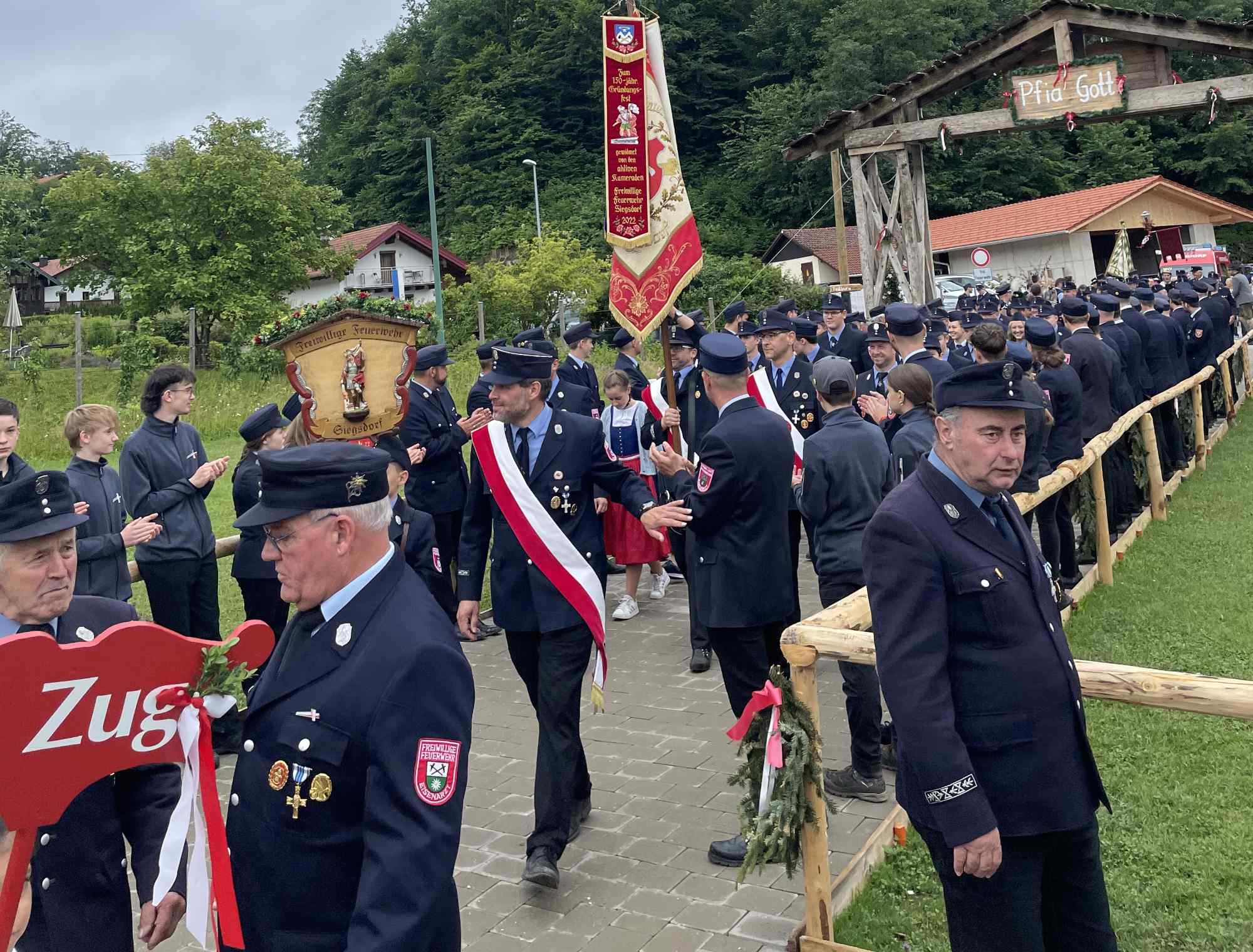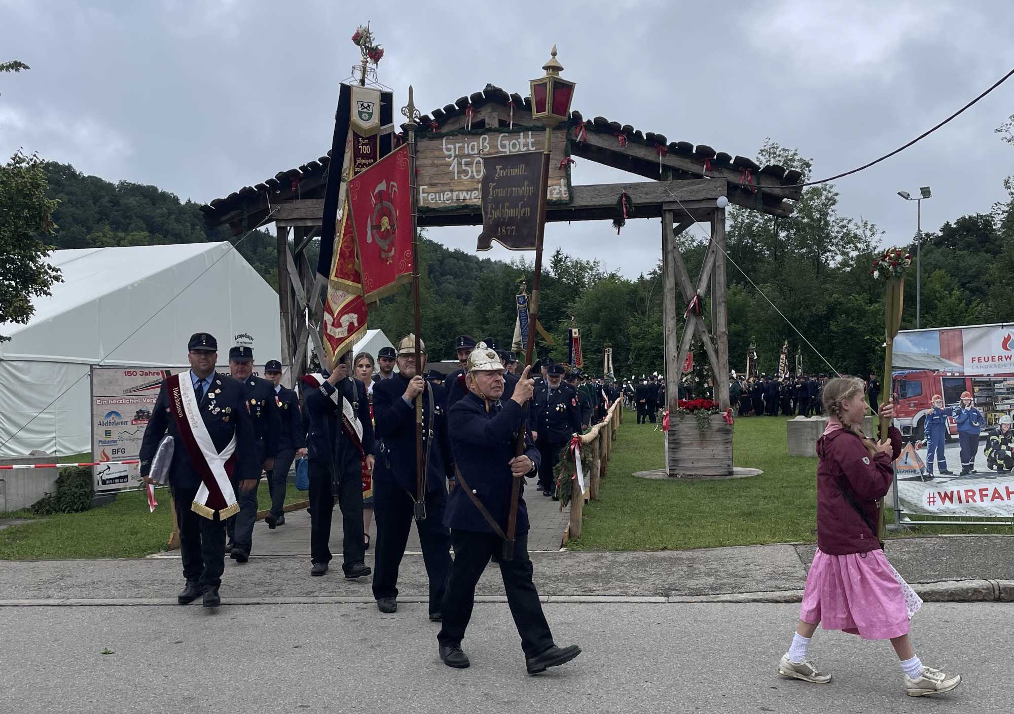 Siegsdorf, Eisenärzt. Der Festsonntag (23.6.) bildete den Abschluss und Höhepunkt der Feierlichkeiten rund um das 150-jährige Jubiläum der Feuerwehr Eisenärzt. Unzählige Ortsvereine sowie Feuerwehrvereine feierten zusammen mit den Mitgliedern des Jubelvereins zusammen Gottesdienst und zogen in einem festlichen Umzug durch den Ort. Den geselligen Ausklang des Festes bildete ein gemeinsames Mittagessen im Bierzelt. Der Kreisfeuerwehrverband Traunstein wünscht der Feuerwehr Eisenärzt für die Zukunft alles erdenklich Gute.