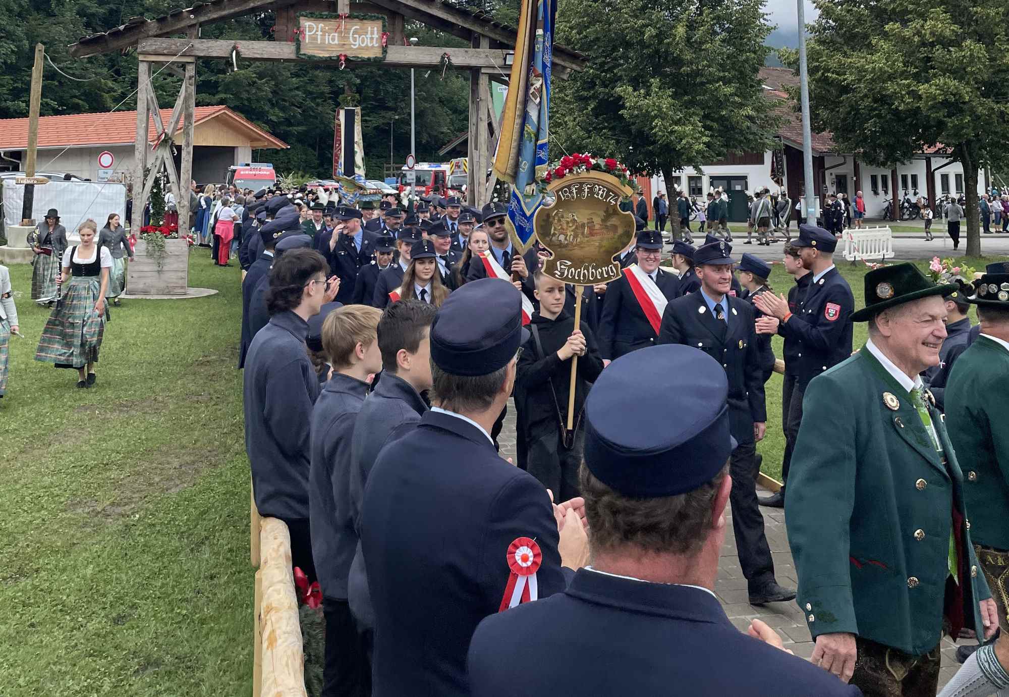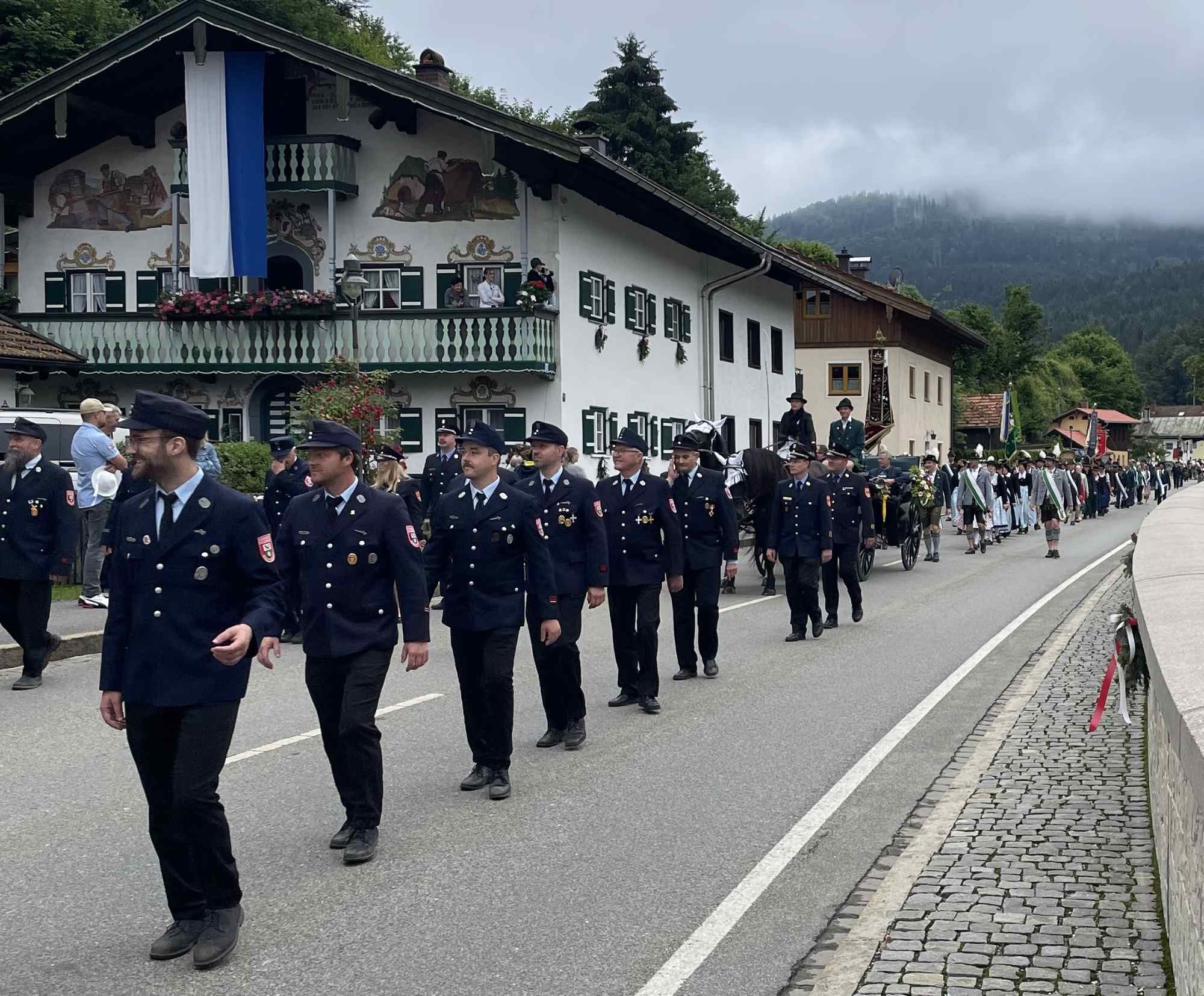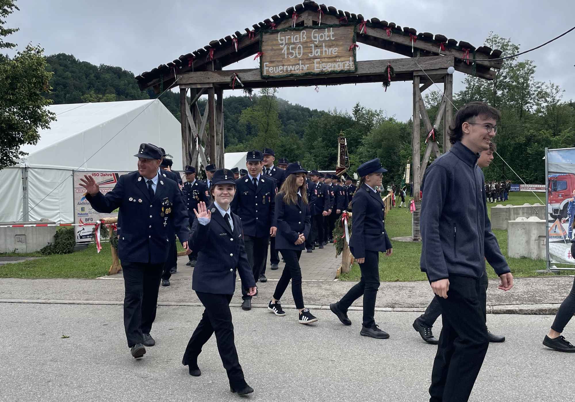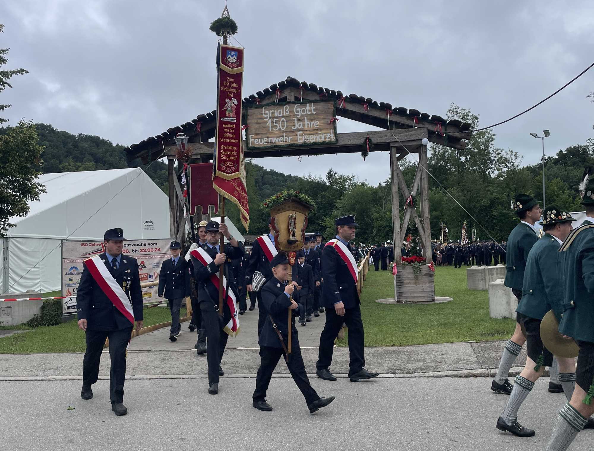Siegsdorf, Eisenärzt. Der Festsonntag (23.6.) bildete den Abschluss und Höhepunkt der Feierlichkeiten rund um das 150-jährige Jubiläum der Feuerwehr Eisenärzt. Unzählige Ortsvereine sowie Feuerwehrvereine feierten zusammen mit den Mitgliedern des Jubelvereins zusammen Gottesdienst und zogen in einem festlichen Umzug durch den Ort. Den geselligen Ausklang des Festes bildete ein gemeinsames Mittagessen im Bierzelt. Der Kreisfeuerwehrverband Traunstein wünscht der Feuerwehr Eisenärzt für die Zukunft alles erdenklich Gute.