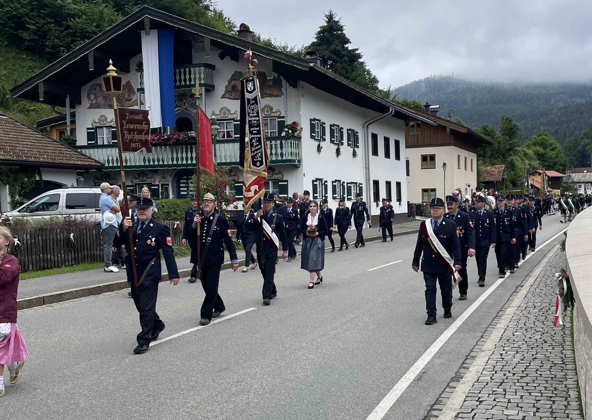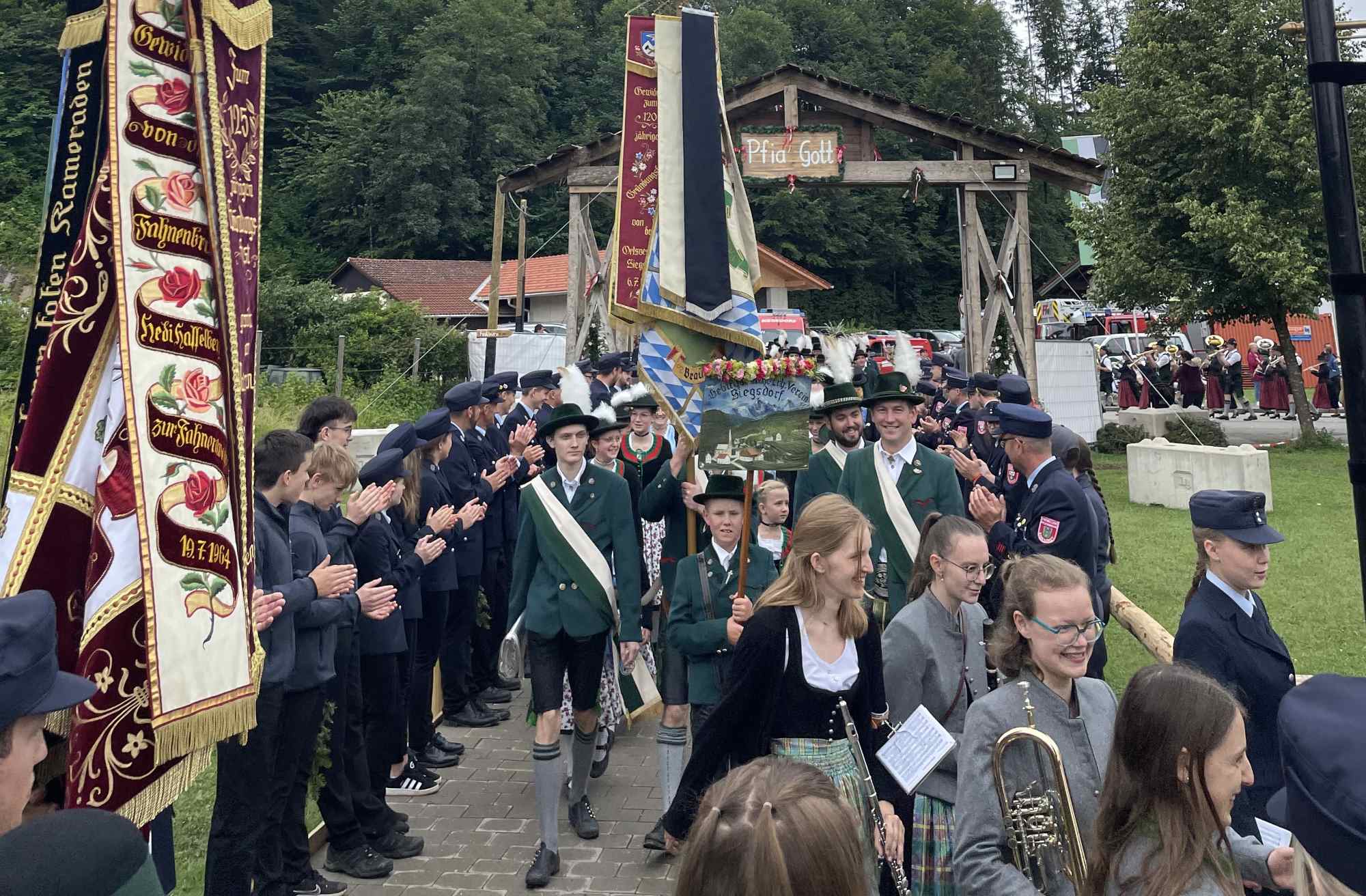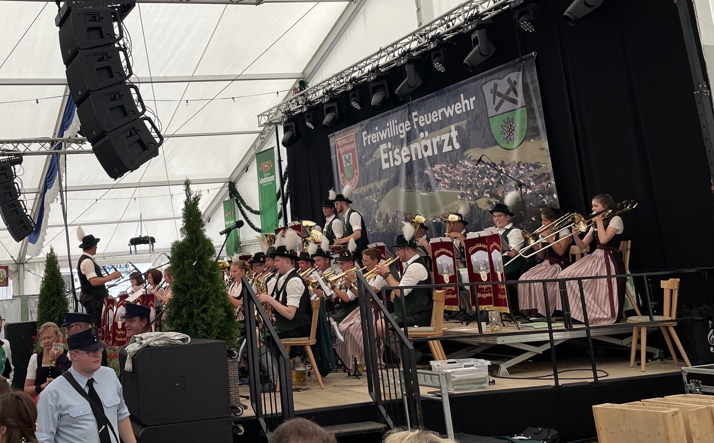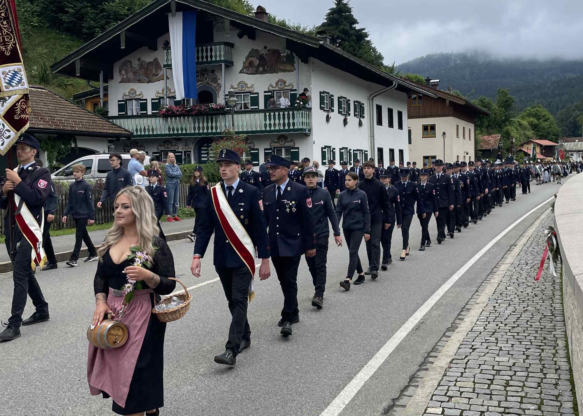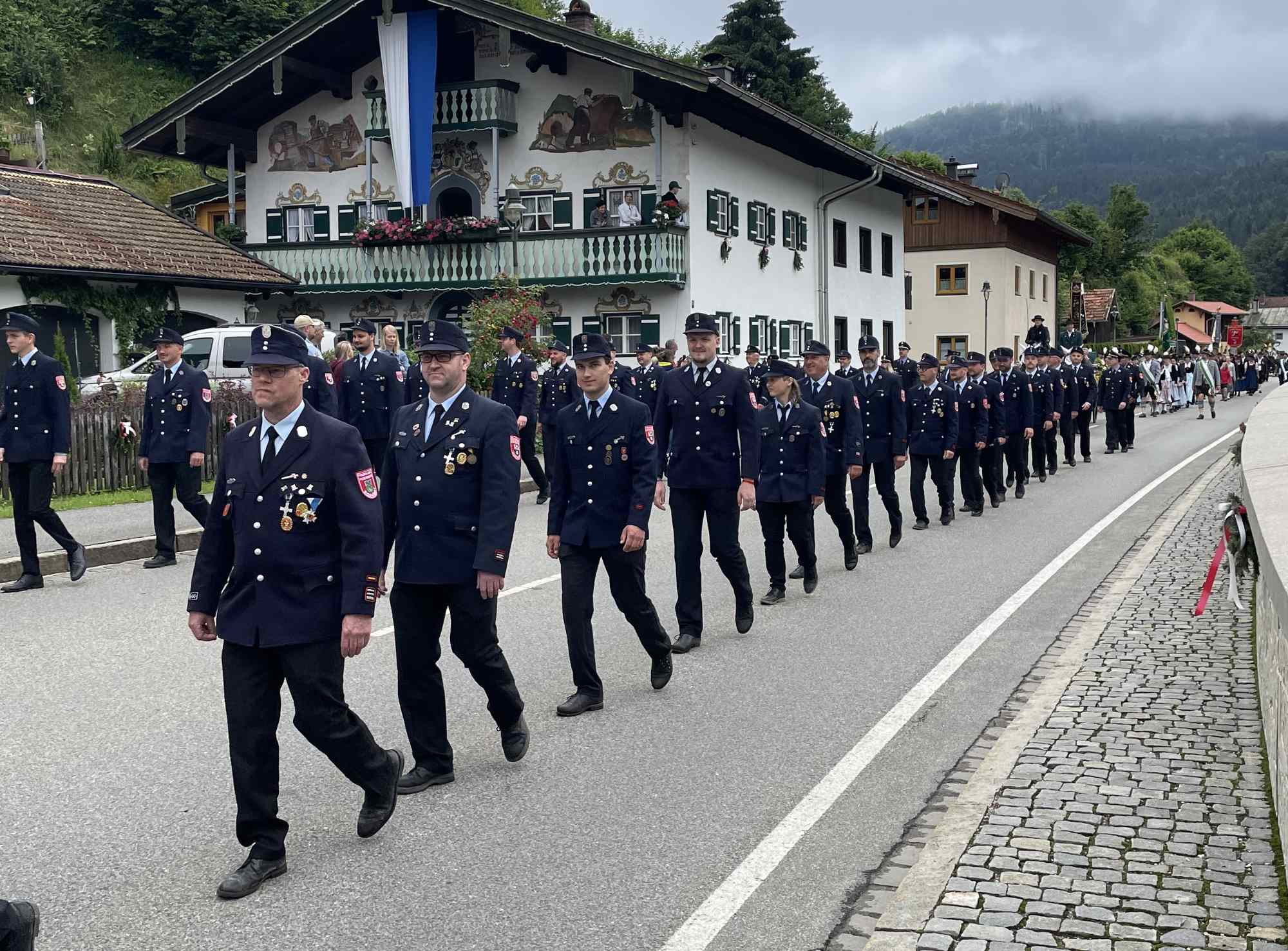 Siegsdorf, Eisenärzt. Der Festsonntag (23.6.) bildete den Abschluss und Höhepunkt der Feierlichkeiten rund um das 150-jährige Jubiläum der Feuerwehr Eisenärzt. Unzählige Ortsvereine sowie Feuerwehrvereine feierten zusammen mit den Mitgliedern des Jubelvereins zusammen Gottesdienst und zogen in einem festlichen Umzug durch den Ort. Den geselligen Ausklang des Festes bildete ein gemeinsames Mittagessen im Bierzelt. Der Kreisfeuerwehrverband Traunstein wünscht der Feuerwehr Eisenärzt für die Zukunft alles erdenklich Gute.