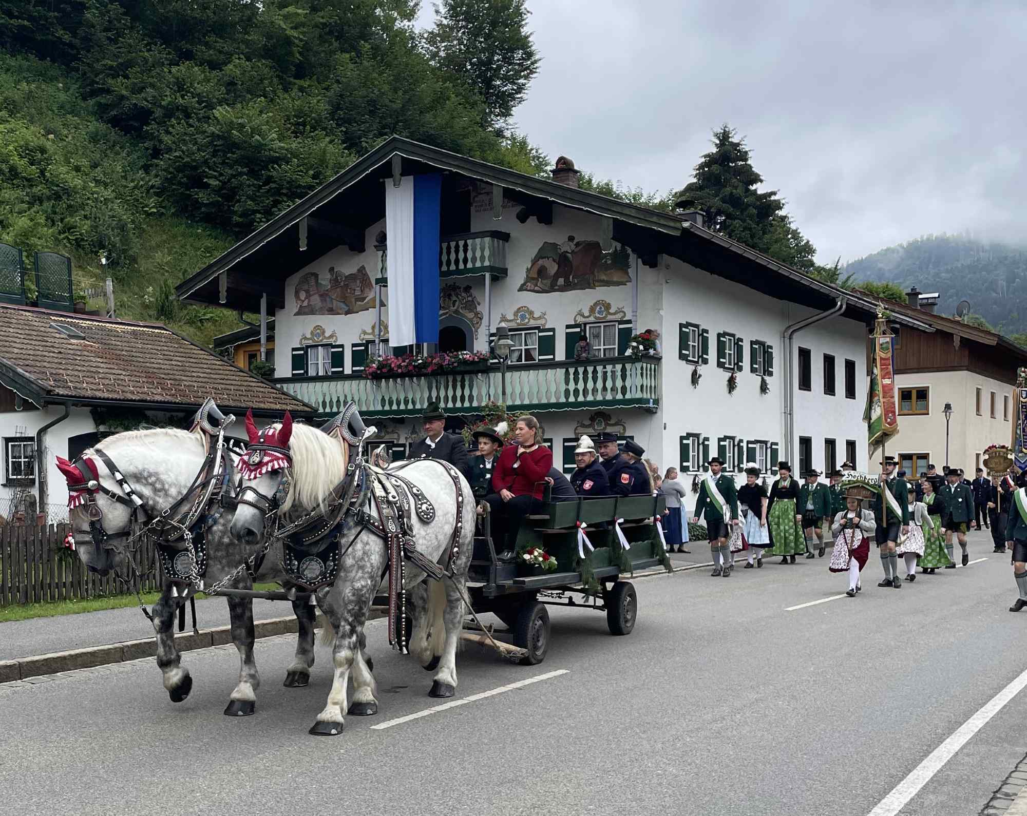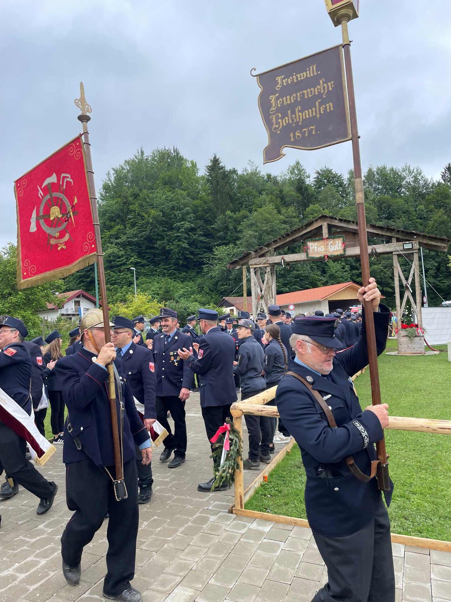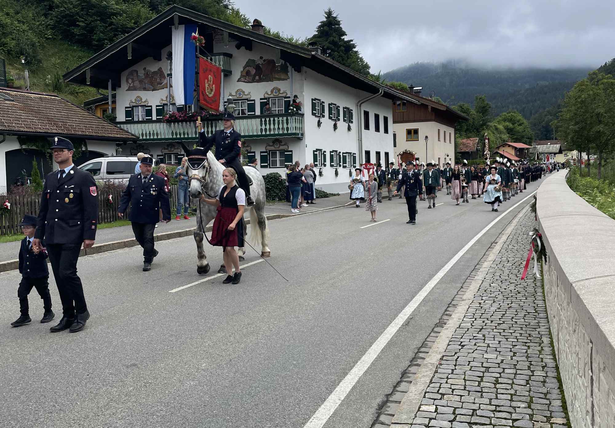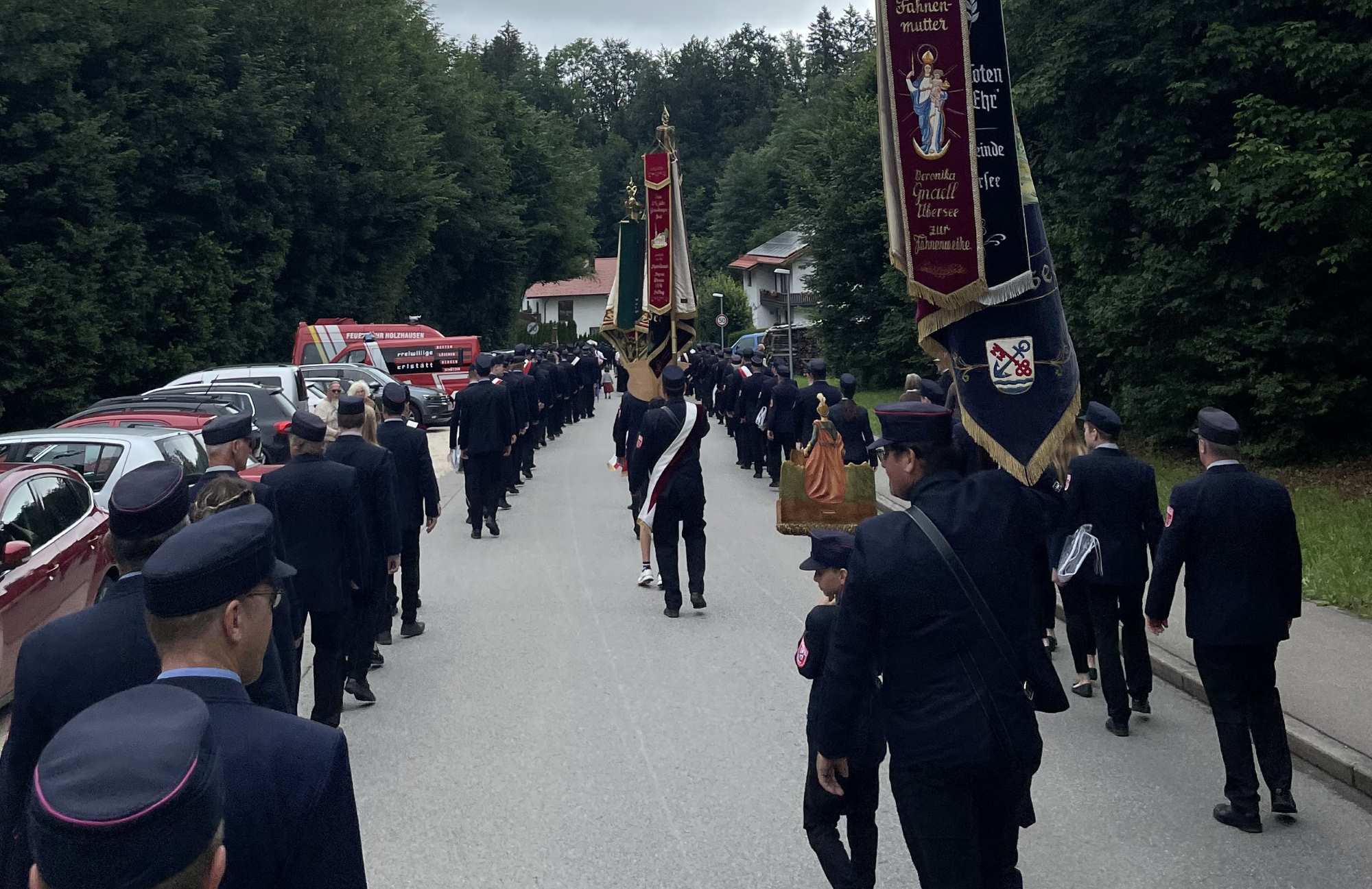 Siegsdorf, Eisenärzt. Der Festsonntag (23.6.) bildete den Abschluss und Höhepunkt der Feierlichkeiten rund um das 150-jährige Jubiläum der Feuerwehr Eisenärzt. Unzählige Ortsvereine sowie Feuerwehrvereine feierten zusammen mit den Mitgliedern des Jubelvereins zusammen Gottesdienst und zogen in einem festlichen Umzug durch den Ort. Den geselligen Ausklang des Festes bildete ein gemeinsames Mittagessen im Bierzelt. Der Kreisfeuerwehrverband Traunstein wünscht der Feuerwehr Eisenärzt für die Zukunft alles erdenklich Gute.