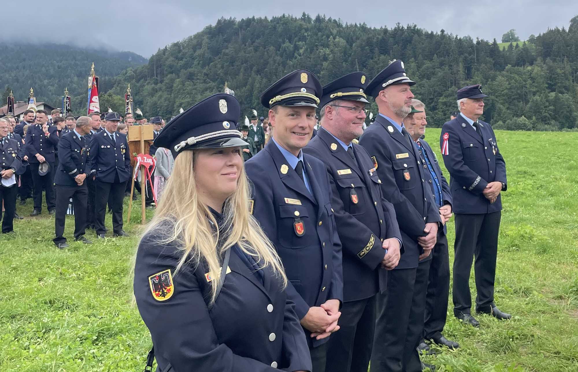 Kreisbrandrat Christof Grundner würdigte in seiner Ansprache insbesondere die Leistungen der Aktiven, „die stets alles liegen und stehen lassen wenn Hilfe gebraucht wird“. Neben ihm nahmen Kreisbrandinspektor Rupert Kink, Kreisbrandmeister Stefan Nitzinger, Fachberaterin Cornelia Kübler und Thomas Schmelz von der Pressestelle seitens des Kreisfeuerwehrverbandes Traunstein am Festsonntag teil.