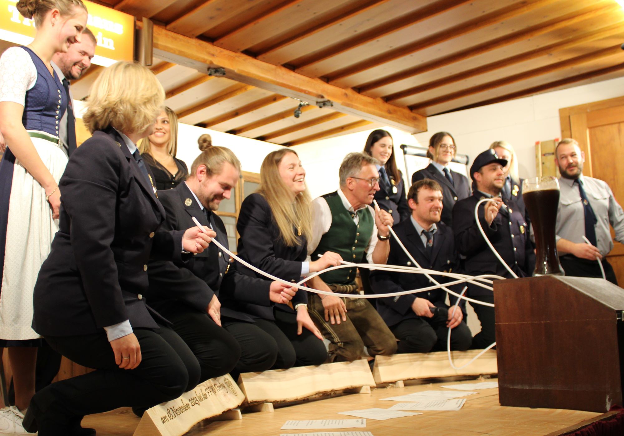 Tittmoning, Kay. Feuerwehrleute können nicht nur Brände löschen und Verunfallte retten, sondern haben auch das Potenzial für bühnenreife Veranstaltungen mit hohem Unterhaltungswert - was die Mitglieder der Feuerwehren Kay und Törring unlängst beim gegenseitigen Patenbitten im Gasthaus Glück in Ledern eindrucksvoll unter Beweis gestellt haben. Beide Feuerwehren feiern im kommenden Jahr runde Vereinsjubiläen und waren auf der Suche nach einem „würdigen Patenverein“. Dieser unterhaltsame Abend endete mit einem „Happy End“, denn beide Vereine machen sich im kommenden Jahr gegenseitig den „Göd“ – was wohl in der Geschichte der heimischen Feuerwehren „ein Novum“ darstellen dürfte. Bis „alles in trockenen Tüchern war“ lieferten sich die Vertreter beider Vereine mitunter theaterreife Verhandlungen, gepaart mit humoristischen Einlagen und „harten Wortgefechten“.