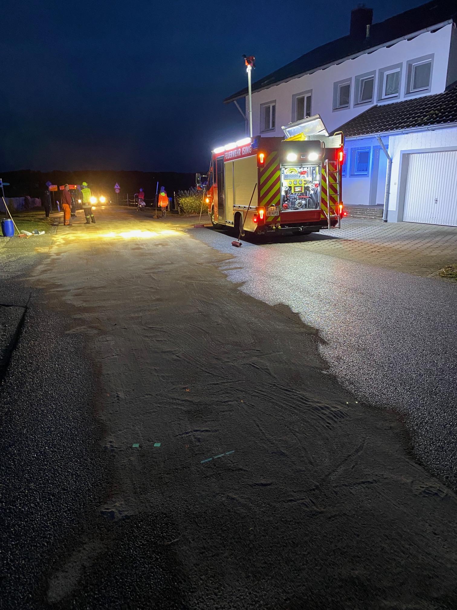 Um 16:51 Uhr am vergangenen Donnerstag wurde die Feuerwehr Ising mit dem Stichwort „Technische Hilfeleistung - Straße reinigen“ von der Integrierten Leitstelle Traunstein in den Ortsteil Tauernhausen alarmiert. Der Anrufer meldete, dass etwa zehn Liter Hydrauliköl aus seiner Arbeitsmaschine ausgelaufen waren. Die Einsatzkräfte, die mit zwei Fahrzeugen ausgerückt waren, fanden an der Einsatzstelle einen deutlich größeren Schaden vor. So waren beide Fahrrichtungen der Kreisstraße TS 11 von einer Ölspur über eine Länge von 60 Metern bedeckt. Hydrauliköl war auch in das angrenzende Bankett gelaufen und hat das Erdreich kontaminiert.