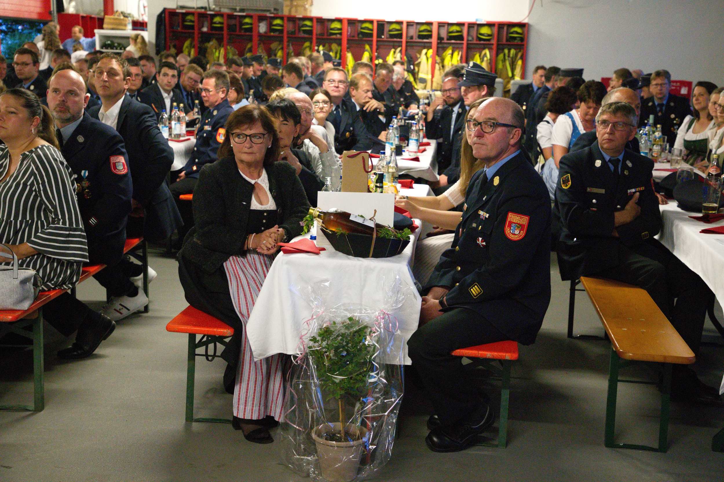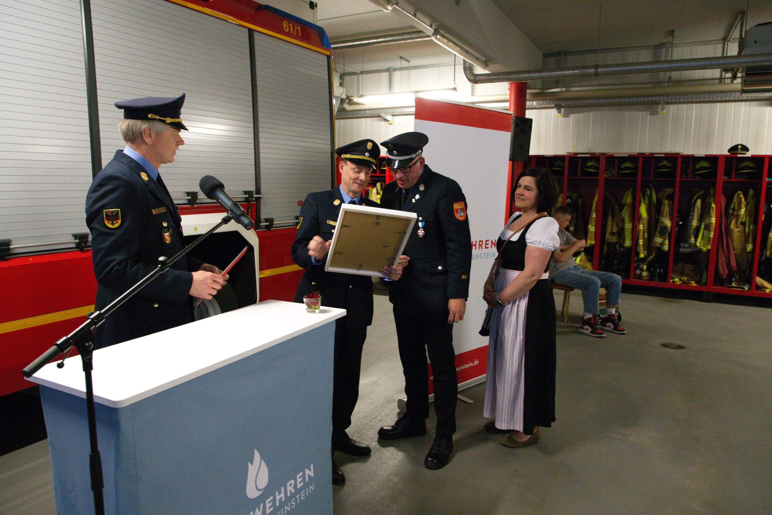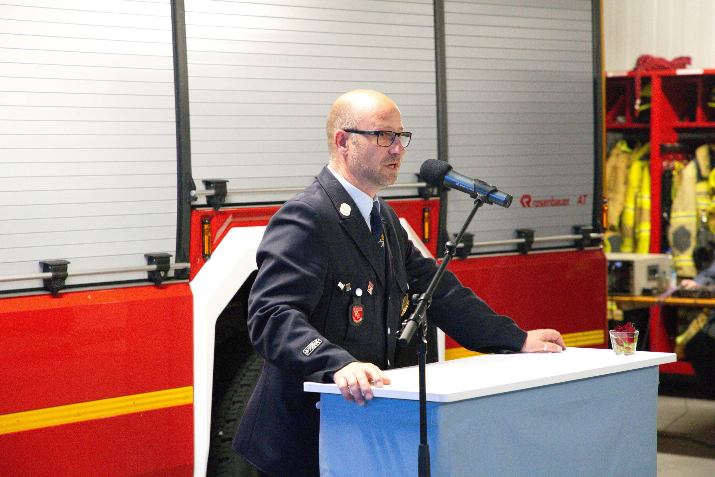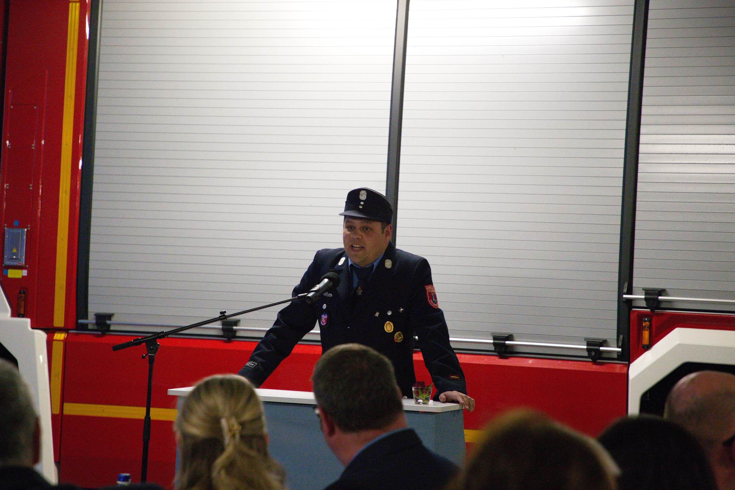 Alexander Fuchs vom Landratsamt Traunstein dankte beiden für die jahrzehntelange gute Zusammenarbeit und erinnerte exemplarisch an Einsätze wie die angebohrte Gasblase in Grabenstätt oder den Ammoniak Austritt in Ruhpolding. „Für die Feuerwehren vor Ort ist es sehr wichtig, dass rund um die Uhr auf eine zusätzliche Stütze zurückgegriffen werden kann und ihr Beide seid solche Stützen gewesen“, sagte er unter dem Applaus der Gäste. Eine Abordnung der Kreisbrandinspektion Rosenheim war ebenfalls nach Übersee angereist, um den beiden Ehrengästen ihren Dank für die langjährige gute Zusammenarbeit auszusprechen.