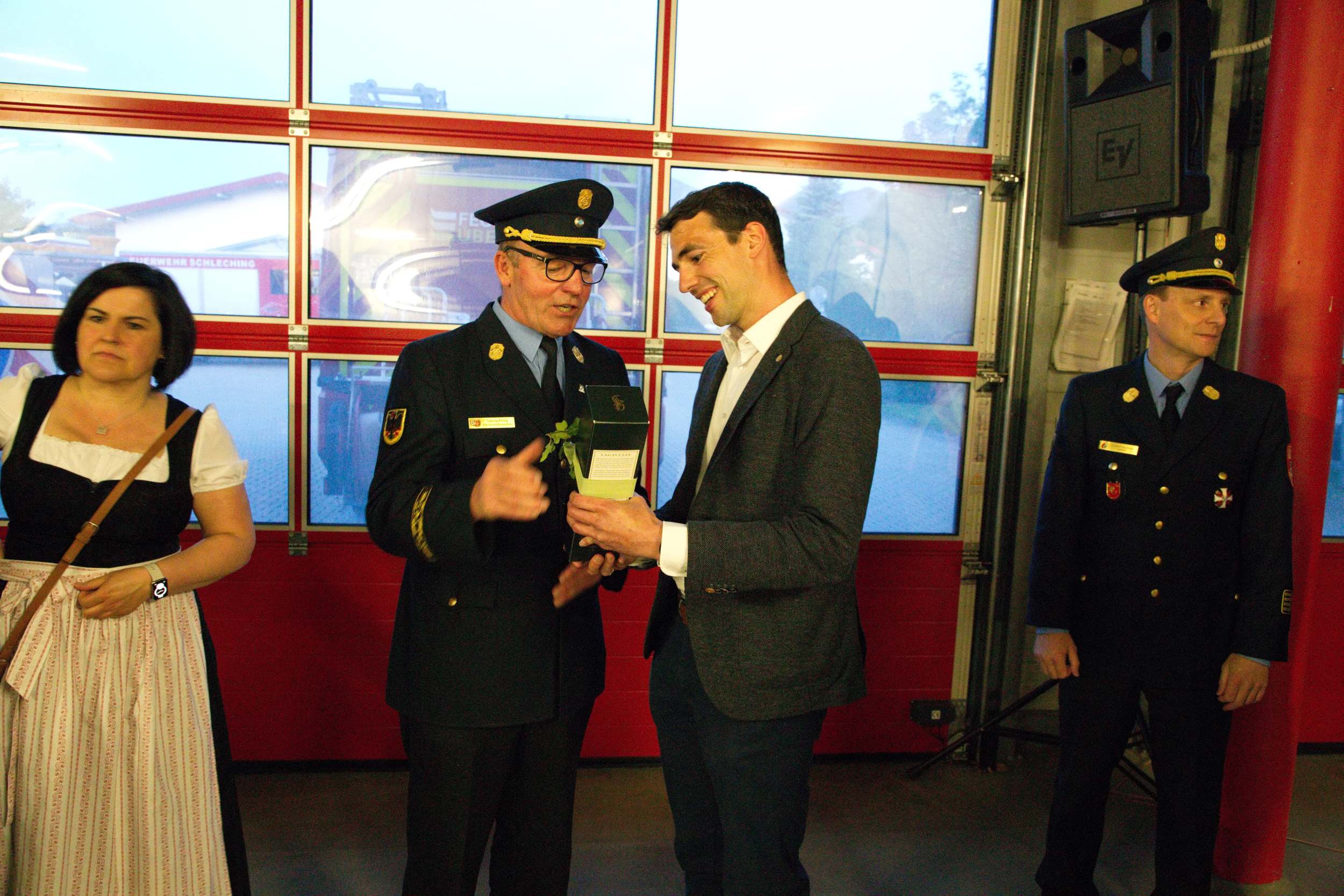 „Wir hatten stets eine Kommunikation auf Augenhöhe“ dankte der Kommandantensprecher Sven Lein von der Feuerwehr Grabenstätt den Beiden. „Es war für uns Kommandanten stets ein gutes Gefühl, dass ihr uns insbesondere bei Einsätzen mit Rat und Tat zur Seite gestanden seid“. Sein Amtskollege uns Sprecher der Achentalfeuerwehren Michael Klauser betonte, „ich bewundere euer breites Kreuz über all die Jahre und danke euch vor allem für die unzähligen Ausbildungsveranstaltungen, die ihr für uns durchgeführt habt – es war eine schöne Zeit!“.